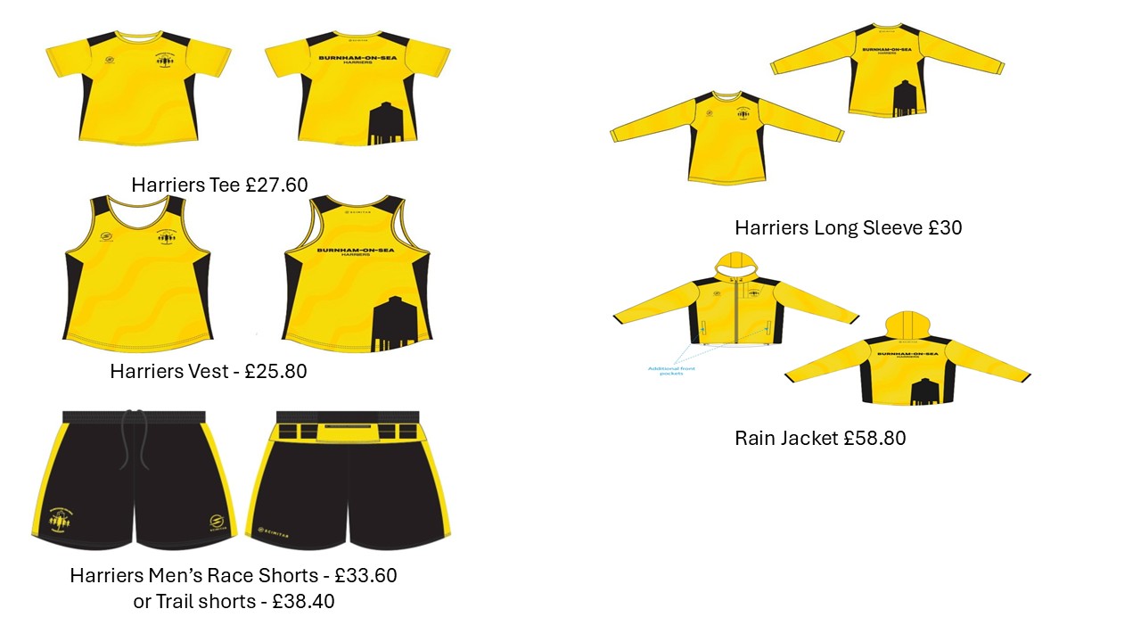 Harriers Scimitar running garments are shown in the image above. Please contact Alexis Briggs if you wish to order a Scimitar garment. Please message Alexis via Spond or email: Littleone030388@hotmail.com